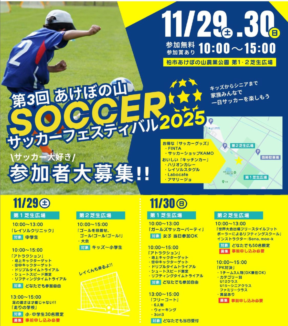 2025年11月29日(土)、30日(日)にて、第3回あけぼの山サッカーフェスティバル2025の開催が決定いたしました!